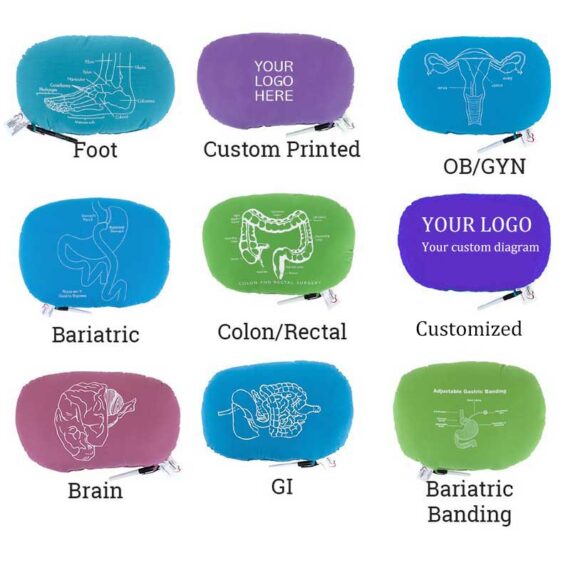 - Each Oval Pillow features your logo on one side. On the other side, you can choose from our library of medical diagrams to help aid in teaching and instruction. Further customization can include:
